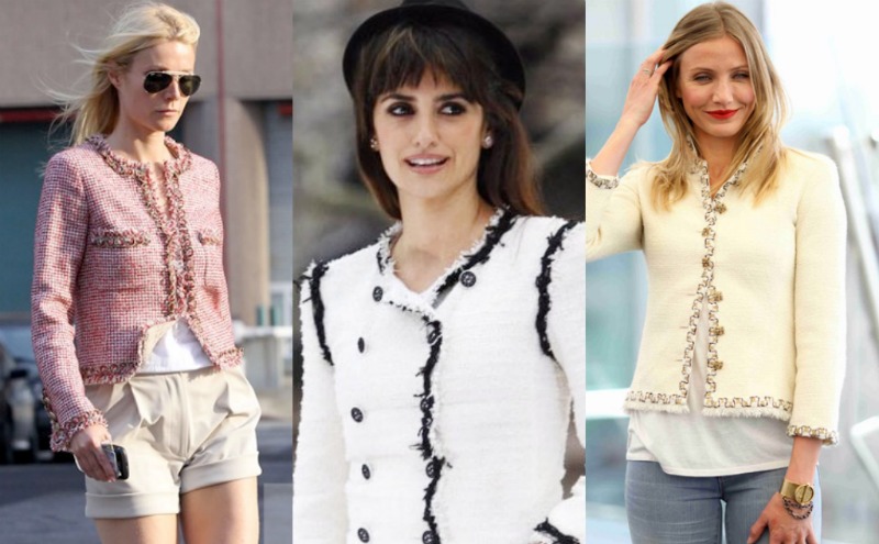 Ne oikeat Chanel-jakuthan sisältävät monia mielenkiintoisia ratkaisuja, chanelismeja. Materiaali on yleensä rouheapintaista mutta pehmeää tweediä tai bukleeta. Vuori on ohutta silkkiä ja se on tikattu kiinni päällyskankaaseen mahdollisimman näkymättömin ompelein. Tämä tekniikka antaa hieman tukea valuvalle tweedille mutta säilyttää kuitenkin jakun neuletakkimaisen mukavuuden. Tunnusomaisia ovat myös taskut, mielikuvitukselliset reunusnauhat, näyttävät metallinapit ja helman sisäpuolelle painoksi ommeltu ketju, joka saa jakun laskeutumaan pehmeästi ja kauniisti. Ompeluharrastajien parissa chanelismein toteutettu jakku on suosittu taidonnäyte. Minäkin haaveilen sellaisen ompelusta. Tällä hetkellä suosikkini on lyhyt kaulukseton malli 3/4-hihoin, väriksi valitsisin varmaankin luonnonvalkoisen mustin reunanauhoin.