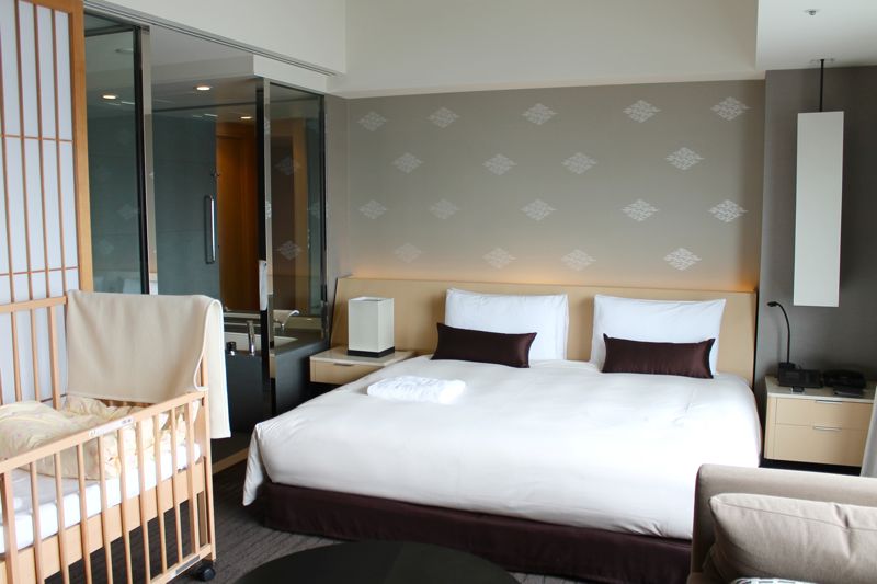 Yksi parhaita juttuja Tokion-matkassa oli hotellimme. Pitääkin tästä lähtien jättää aina majoituksen varaaminen miehen vastuulle. Vaikka olenkin kokovalkoisen ystävä, maanläheisin sävyin toteutettu sisustus oli kyllä niin kiva, että voisin harkita sellaista seuraavaan kotiini. Huonetila oli jaettu osiin liukuovilla, joista kuvissa näkyvät japanilaistyyliset paperiverhoillut ovet. Parasta huoneessa oli kuitenkin näkymä 29.:stä kerroksesta kaupungin ylle. Koska kylpytilassa oli lasiseinät, saattoi sieltäkin ihailla maisemia.