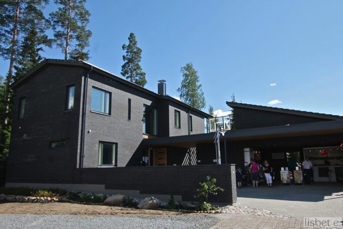 Tämä hiilenharmaa Terca tiilitalo Mustikka (kohde 12) oli yksi suosikeistani, ainakin mitä ulkomuotoon tulee. Virkistävää nähdä välillä myös tiiliverhousta! Vastapäinen talo Mutteri oli peräti punatiiliverhoiltu kuin takaumana 80-luvulta. Onkohan tiilipinta pientalorakentamisen seuraava trendi?