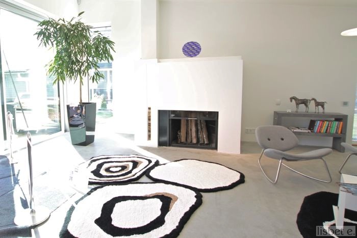 Leveällä puutavaralla päällystetty, purjekattoinen terassi suurine lasiovineen on kerta kaikkiaan upea. Sisältä löytyy pinnoitettu betonilattia, joka osaltaan mahdollistaa sen, ettei tässä talossa ole listoja juuri missään.