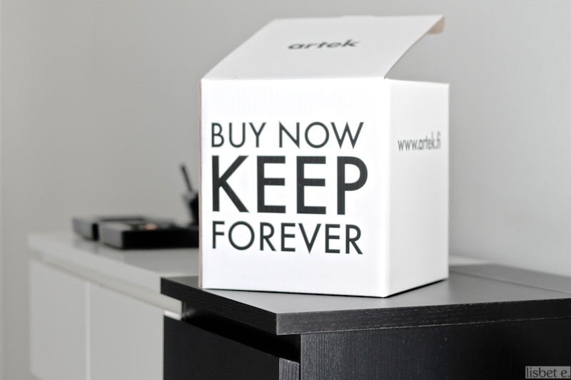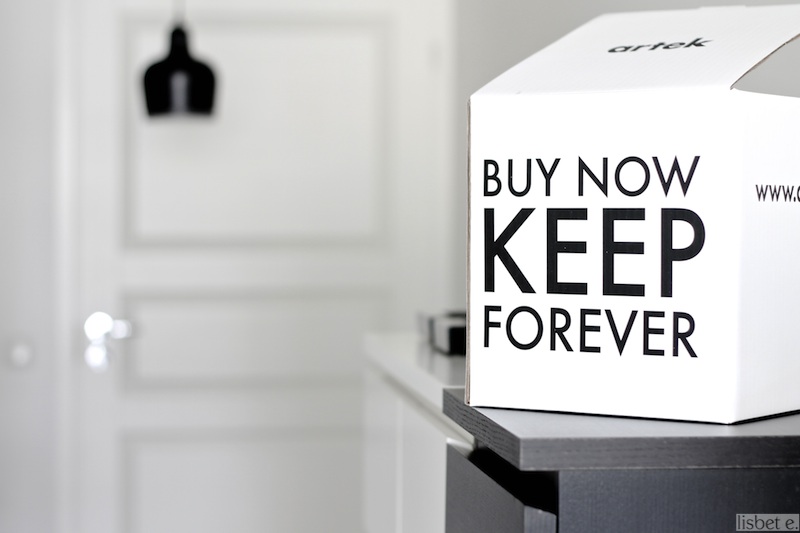 Valaisinostosten suhteen olen kuitenkin ollut pitkäikäisemmällä linjalla. Taustalla näkyy katossa (liian matalalla) roikkuva Artekin A330S, joita on tarkoitus tulla eteiskäytävälle kaksi. Pakkauksen teksti saattaa hyvinkin pitää paikkansa, eihän katossa roikkuva valaisin juuri edes kulu käytössä.