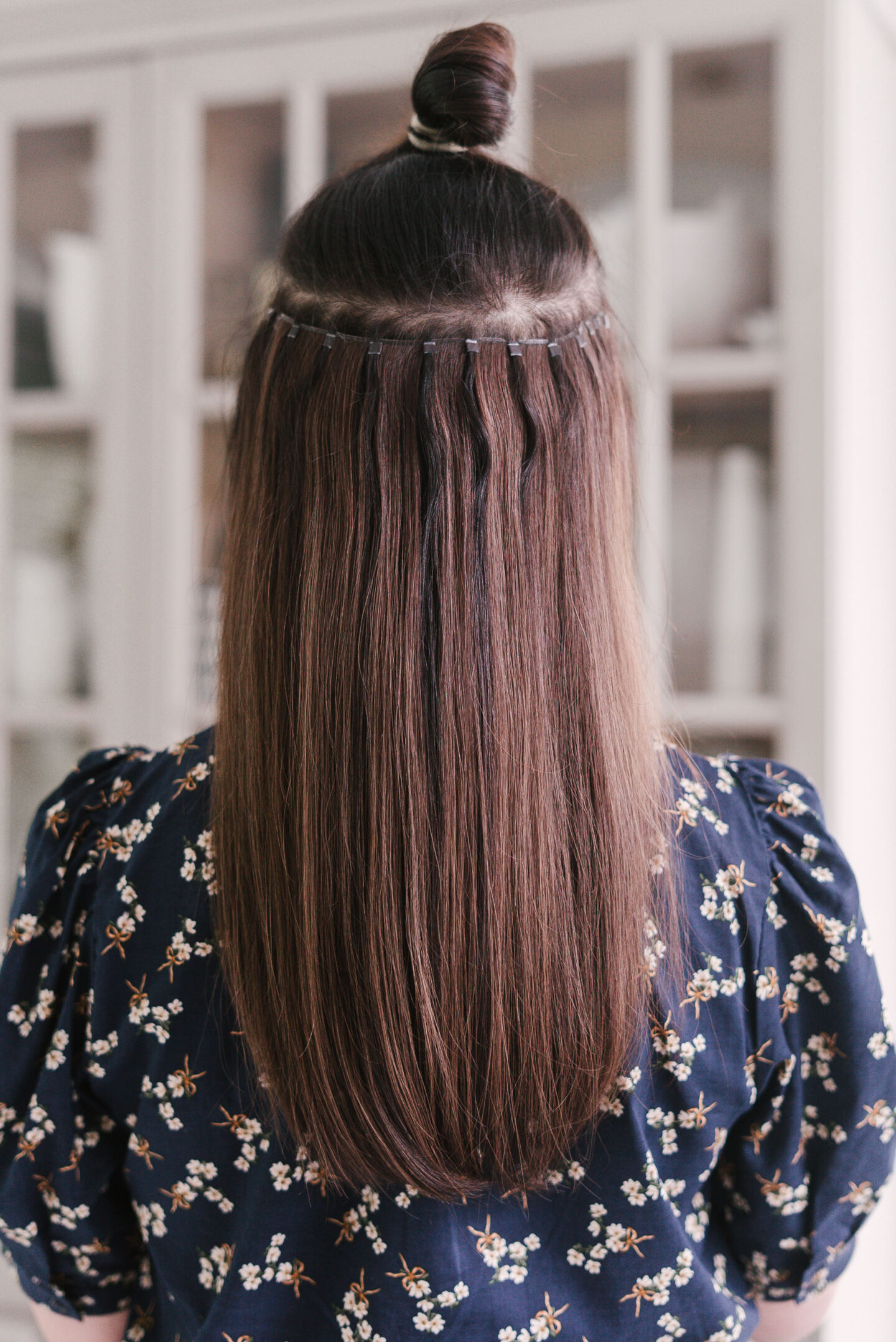 Oletteko huomanneet pidentyneet hiukseni viime viikkojen kuvissa? Ehkä ette – muutos on kuitenkin maltillinen – mutta itse olen näistä aika innoissani. Hiljattain hiuksiini nimittäin laitettiin uusi Beaded Weft -hiustenpidennys. Sitä ennen käytin pitkään hartiamittaista teippituuhennusta, joka käytännössä antoi myös hieman lisämittaa hiuksille. Ensimmäisen kerran teipit laitettiin syksyllä 2019 long bob -mittaan. Siitä hiukset sitten vähitellen saivat pituutta, ja esimerkiksi viime syksynä pidennys ulottui lapojen väliin.
