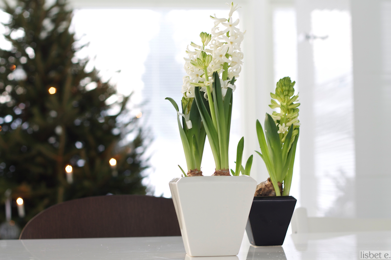 No, selvästi tämäkään ei ollut se joulu. Tunnelma on silti korkealla, sillä olemme saaneet muuton valmiiksi: kaaos sijaitsee enää yhdessä osoitteessa. Suuri osa kodista on pahvilaatikkojen vallassa, mutta oleskelutilojen puolella vallitsee jonkinlainen harmonia. Joulukukat ovat vihdoin pääseet ruukkuihinsa, valkoisia hyasintteja, rakastan niiden tuoksua! Tärkein on kuitenkin joulukuusi. Viimeiset viikot olen elänyt sen ajatuksen voimalla, että kun muutto- ja joulurumba on ohi, pystytämme olohuoneeseen mitä tuuheimman ja tuoksuvimman joulukuusen.