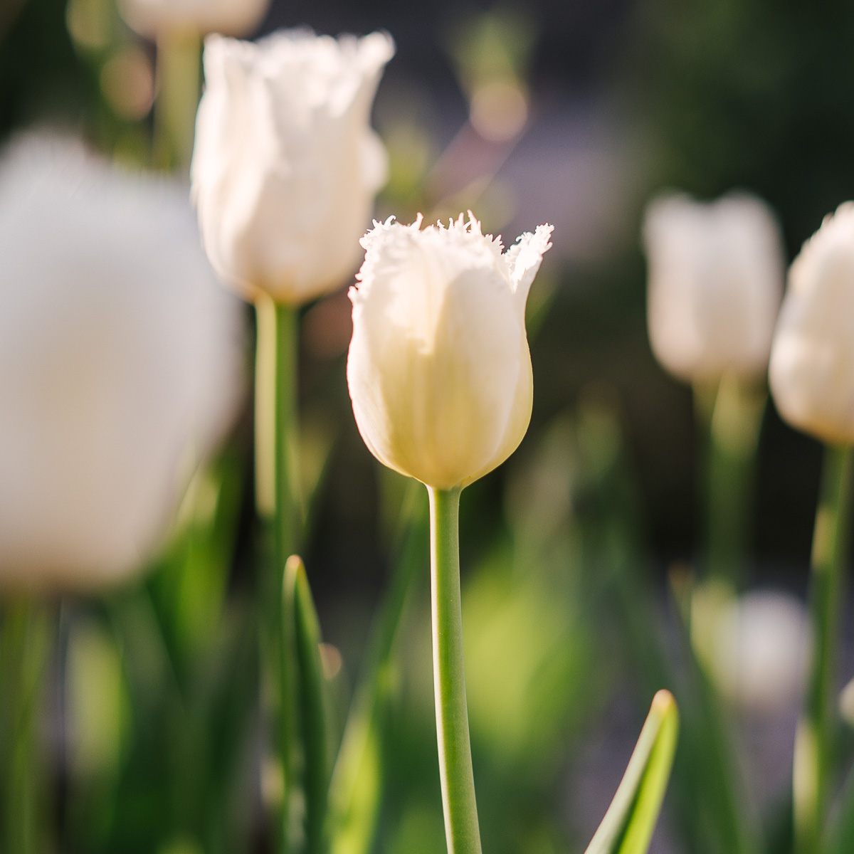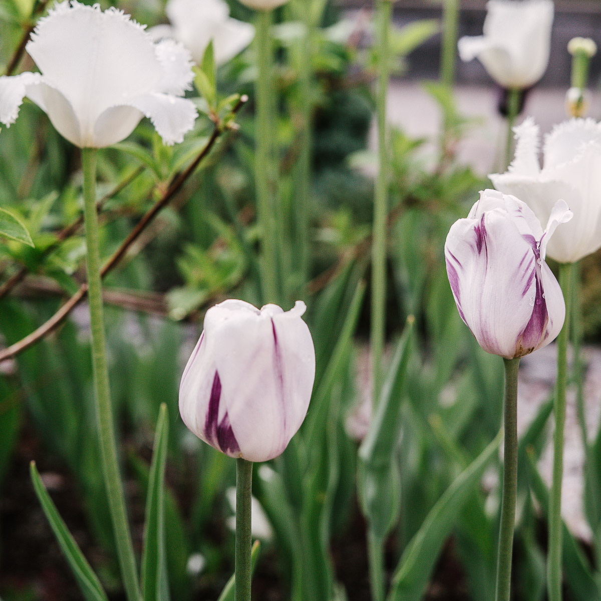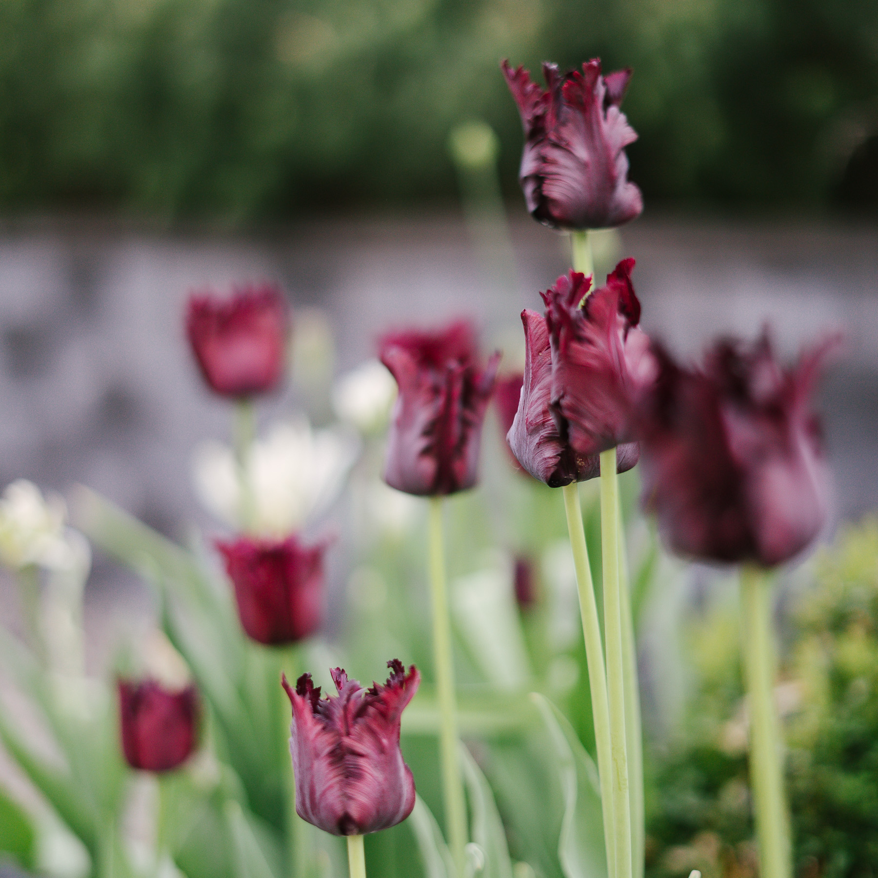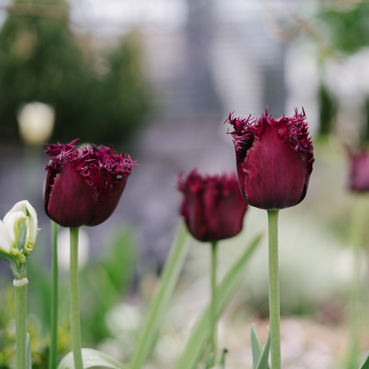 Jos istuttaisin vain kahta lajiketta, laittaisin tummanvioletteja ’Queen of Nighteja’ sekä valkoisia ripsureunaisia ’Honeymooneja’. Saat tyylikkään väriyhdistelmän sekä ylväsvartiset ja kestävät kukat. ’Honeymoonin’ ripsureunassa on sopivasti myös vau-efektiä ja ihasteltavaa alkukesään.