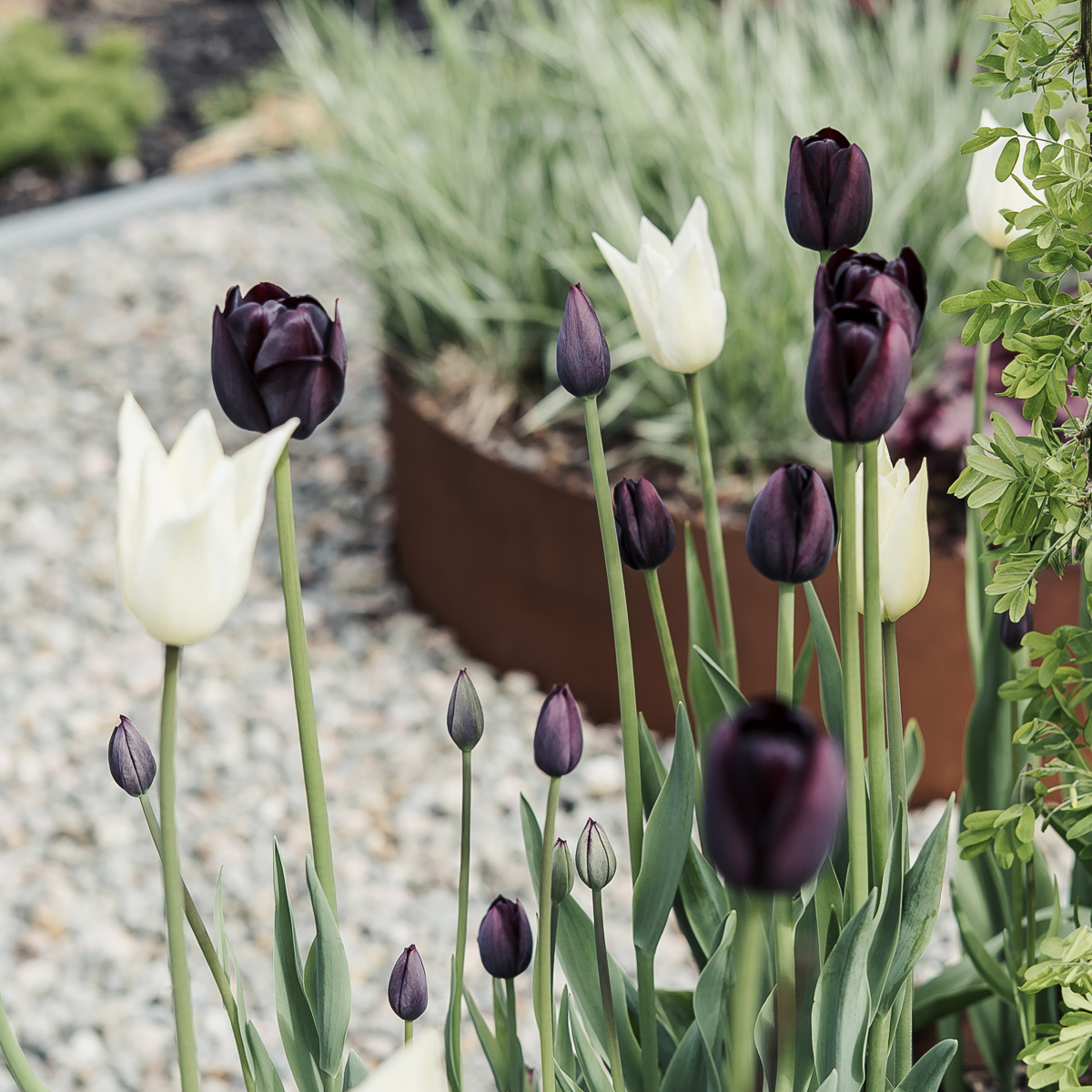 Usein loppukesästä ja syksyn tullen motivaatio puutarhanhoitoon on kadoksissa, mutta kukkasipulit olen kuitenkin pyrkinyt istuttamaan joka syksy. Rakastan erityisesti tulppaaneja ja sitä, miten ne kaunistavat pihan touko-kesäkuun vaihteessa. Kukkasipuleilla voi luoda monenlaista väri-ilottelua, mutta oma taktiikkani on ollut pitää värimaailma yksinkertaisena tummaa violettia ja raikkaan valkoista suosien. Vaihtelua haen eri lajikkeiden muodoista. Minulle on muodostunut lista suosikkilajikkeistani, joita istutan vuodesta toiseen. Osa on sellaisiakin, jotka kukkivat seuraavana vuonna uudelleen, mutta varminta on kuitenkin istuttaa myös uusia kukkasipuleita joka vuosi.