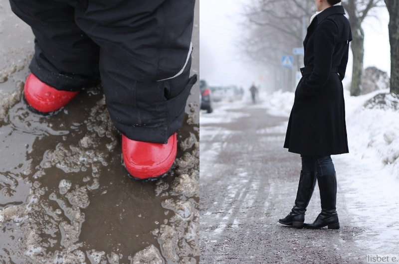 Tässä päivässä oli kyllä tosiaan maaliskuun melankoliaa. Ihana, surumielinen sumu. Kaunista omalla tavallaan, olen aina tykännyt sumusta. Ja vesisadetta en pistä nyt yhtään pahakseni, lumi pois pois! Huomisesta eteenpäin luvattu aurinkoa ties kuinka moneksi päiväksi peräkkäin, tykkään tykkään, vielä enemmän kuin sumusta.