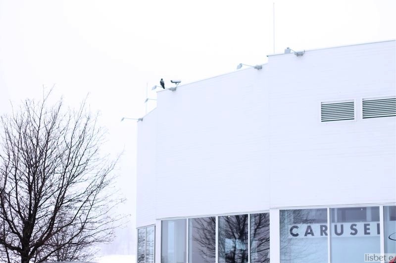 Ulkona ei ollut värejä lainkaan. Niin monen aurinkoisen päivän jälkeen tietysti juuri lauantaiaamuna Helsinkiä verhoaa sakea sumu. Enkä nyt itsekään ollut mikään väripilkku mustassa villakangastrenssissäni.