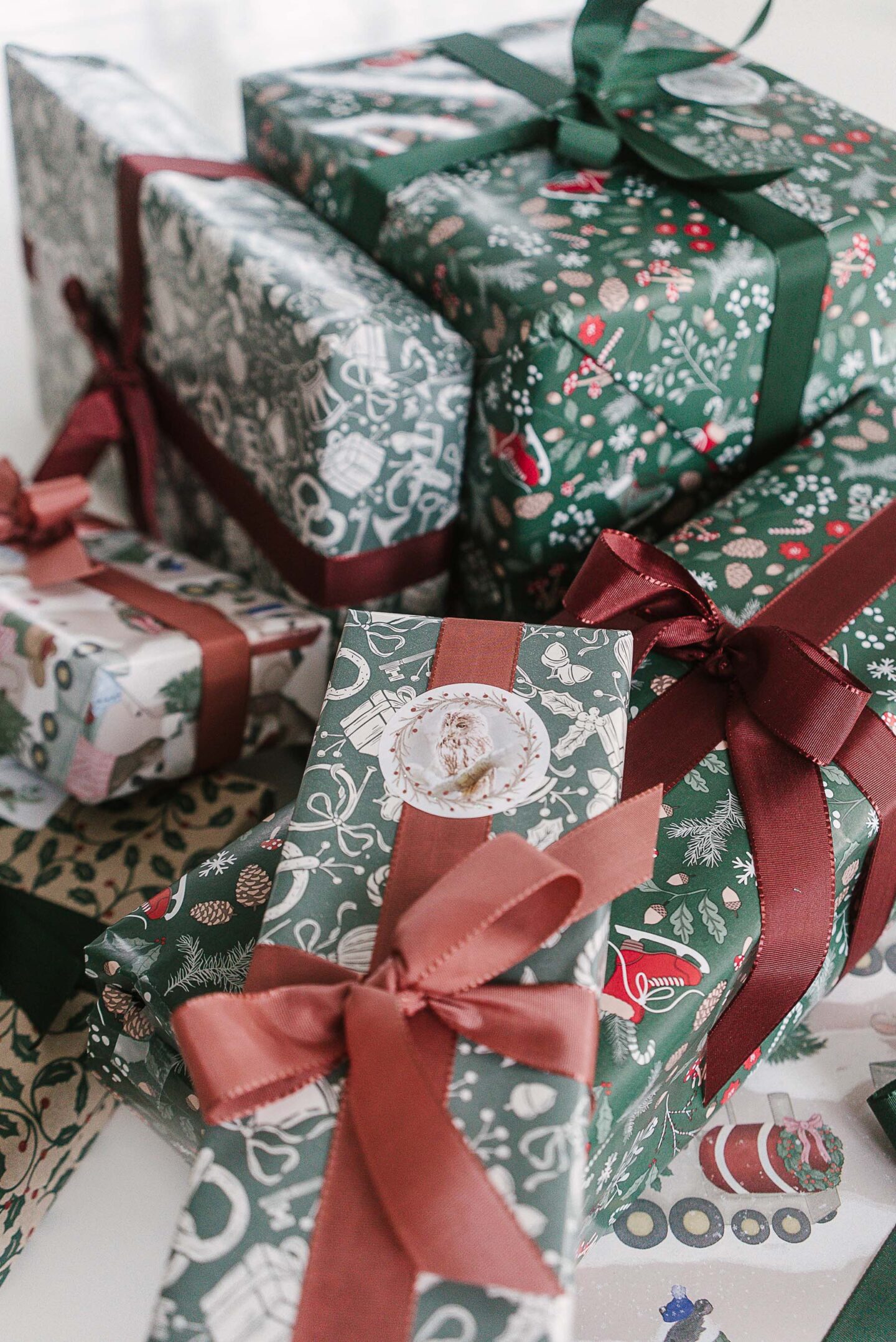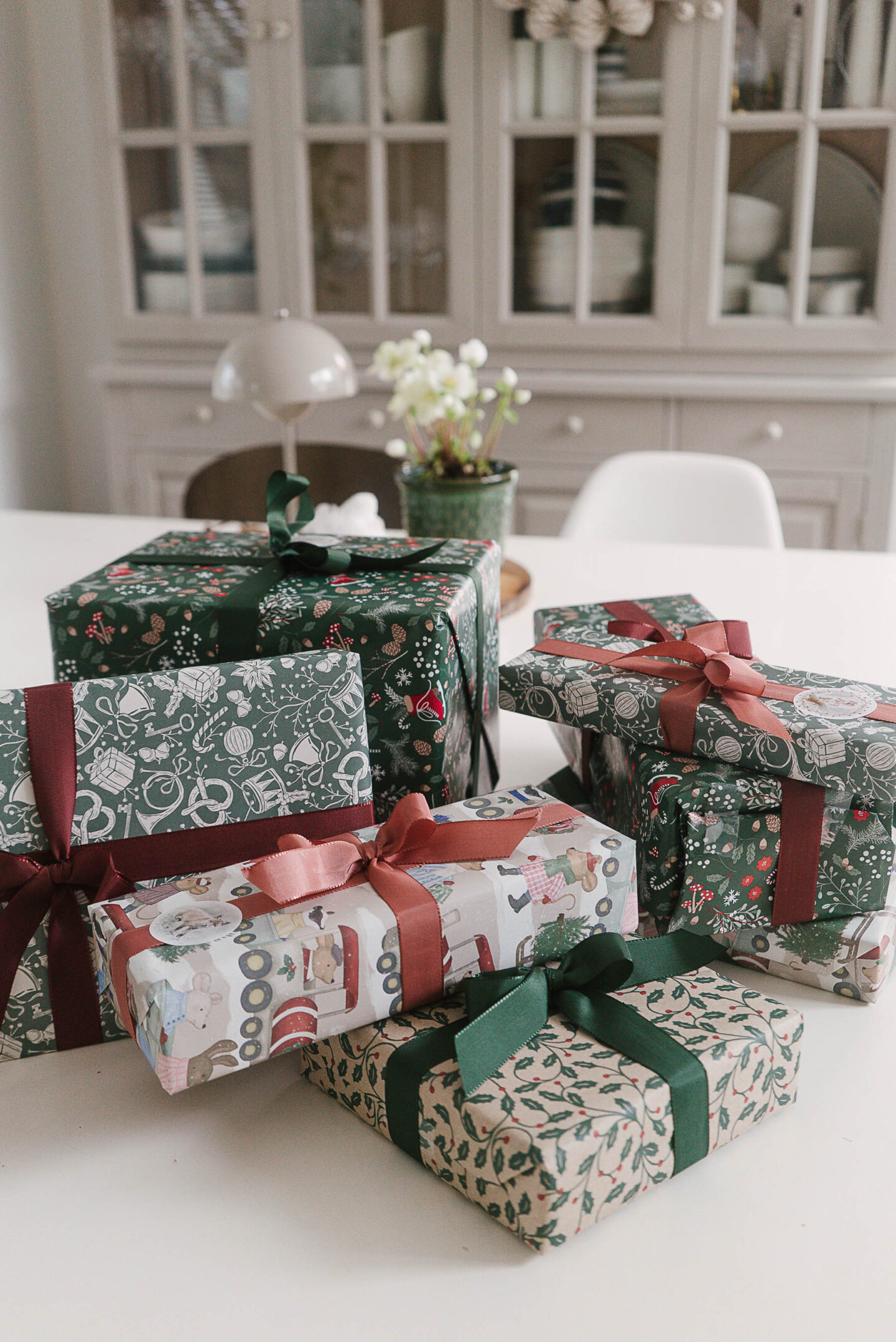 Äh, miten päivät tässä joulun alla juoksevatkaan, vaikka toisaalta ne ovat muistuttaneet kaikki toisiaan harmaudessaan ja valottomuudessaan. Pikku hiljaa alan kuitenkin saada joulun järjestelyistä kiinni. Joulukuusi on saatu sisään, kannettu ulos ja tuotu uusi joulukuusi sisään (palaan tähän). Joulukalat on varattu ja aaton menua suunniteltu. Joulukukkia on ostettu ja kaunis kukkakimppu joulupöytään tilattu. Joululahjoista muutama on vielä kaupassa mutta osa saatu pakettiinkin, kuten kuvasta näkyy. Tämän vuoden paketointipaperit ja nauhat löysin Söstrene Grenestä.
