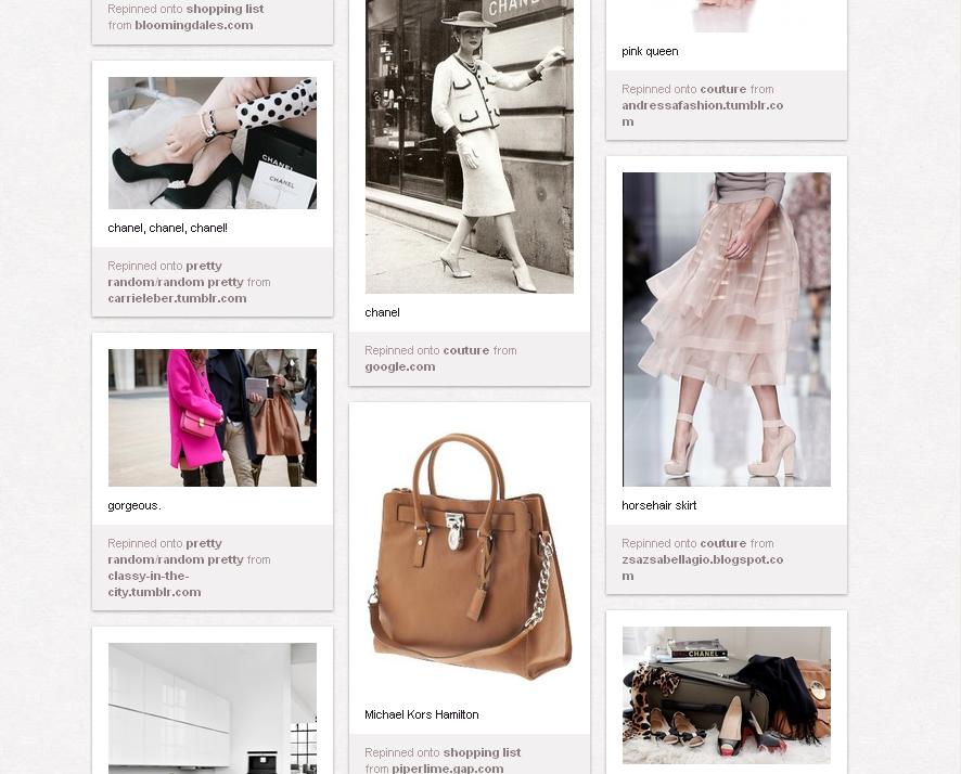 Olen käyttänyt Pinterestiä muutaman viikon ja ajattelin vinkata siitä täällä bloginkin puolella. Jos ihan rehellisiä ollaan, pidän paljon enemmän Weheartit-palvelusta. Se on jollain lailla nokkelampi ja visuaalisesti miellyttävämpi kuin hieman rujo Pinterest. Painopiste on kuitenkin vahvasti siirtynyt Pinterestin suuntaan, joten sinne minäkin jatkossa kokoan inspiraationi. Lisäksi uskon, että nyt kun palvelun suosio on räjähtänyt käsiin, sitä tullaan vielä kehittämään merkittävästi. Toivottavasti ainakin ulkoasua virtaviivaistetaan.