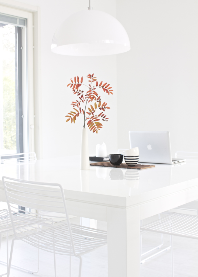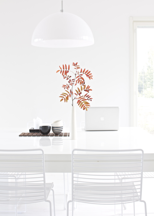 Nuo valkoiset Hayt sopivat mielestäni todella hyvin tuohon valkoiseen pöytään, vaikka pöytä onkin vähän jämerämpi. Pihlajan oksa tuo myös kaunista kontrastia 🙂 Hyvää viikonloppua!