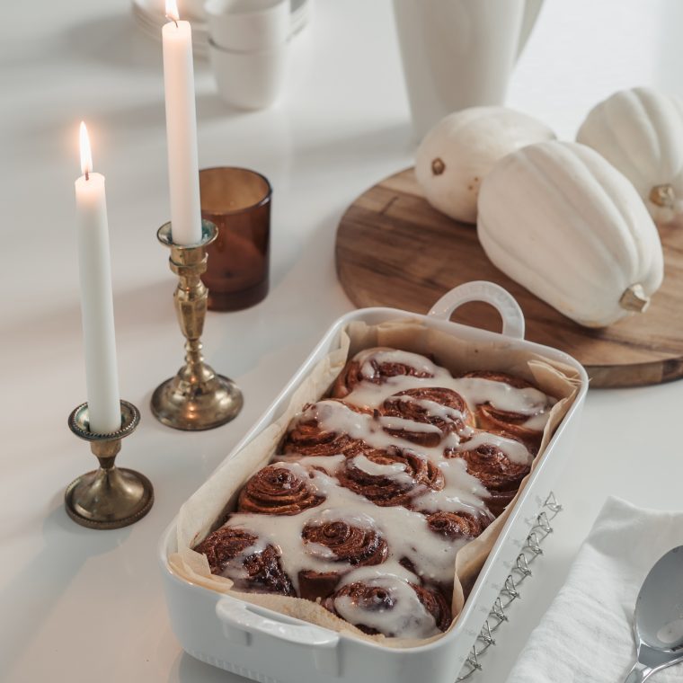 Kuvat ovat eilistä tarjontaa. Tein samaa pullavuokaa, jota olen pyöräytellyt jo muutamaan otteeseen tämän kuun aikana. Yleensä pullavuoka kuitenkin valmistuu iltaa vasten ja puolet siitä katoaa nopeasti parempiin suihin, joten en ole saanut pullia kuvattua blogiin asti. Parasta tässä vuoassa on, että siitä voi nostella pehmeitä, meheviä kierrepullia, joissa ei ole kuivaa kuorta ympärillä. Vaniljainen kuorrute kruunaa kanelilta ja kardemummalta tuoksuvan kokonaisuuden. Tälläkin kertaa pulla teki hyvin kauppansa. Vuoka syntyy helpoista aineksista, jotka ehkä jo löytyvät valmiiksi kotoa.