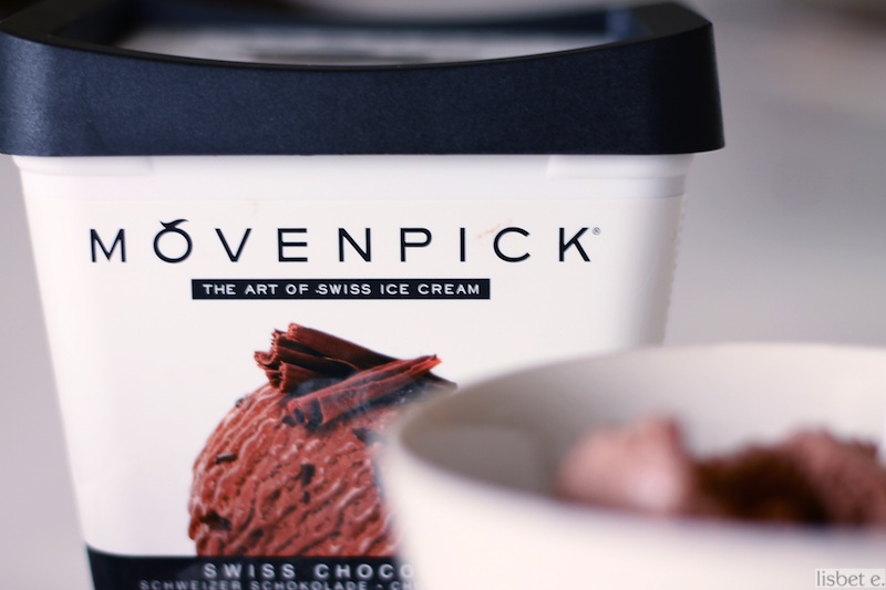 Mikä päivä! Tähän ei auta kuin Mövenpickin Swiss Chocolate -jäätelö. Söimme tätä mieheni kanssa suoraan purkista yksillä ensimmäisistä treffeistämme… ja se oli minusta silloin aika pahaa, jotenkin tunkkaisen makuista. Vaikka makunystyräni ovat sittemmin tottuneet voimakkaan suklaajäätelön makuun, muutama nokare tätä herkkua riittää edelleen.