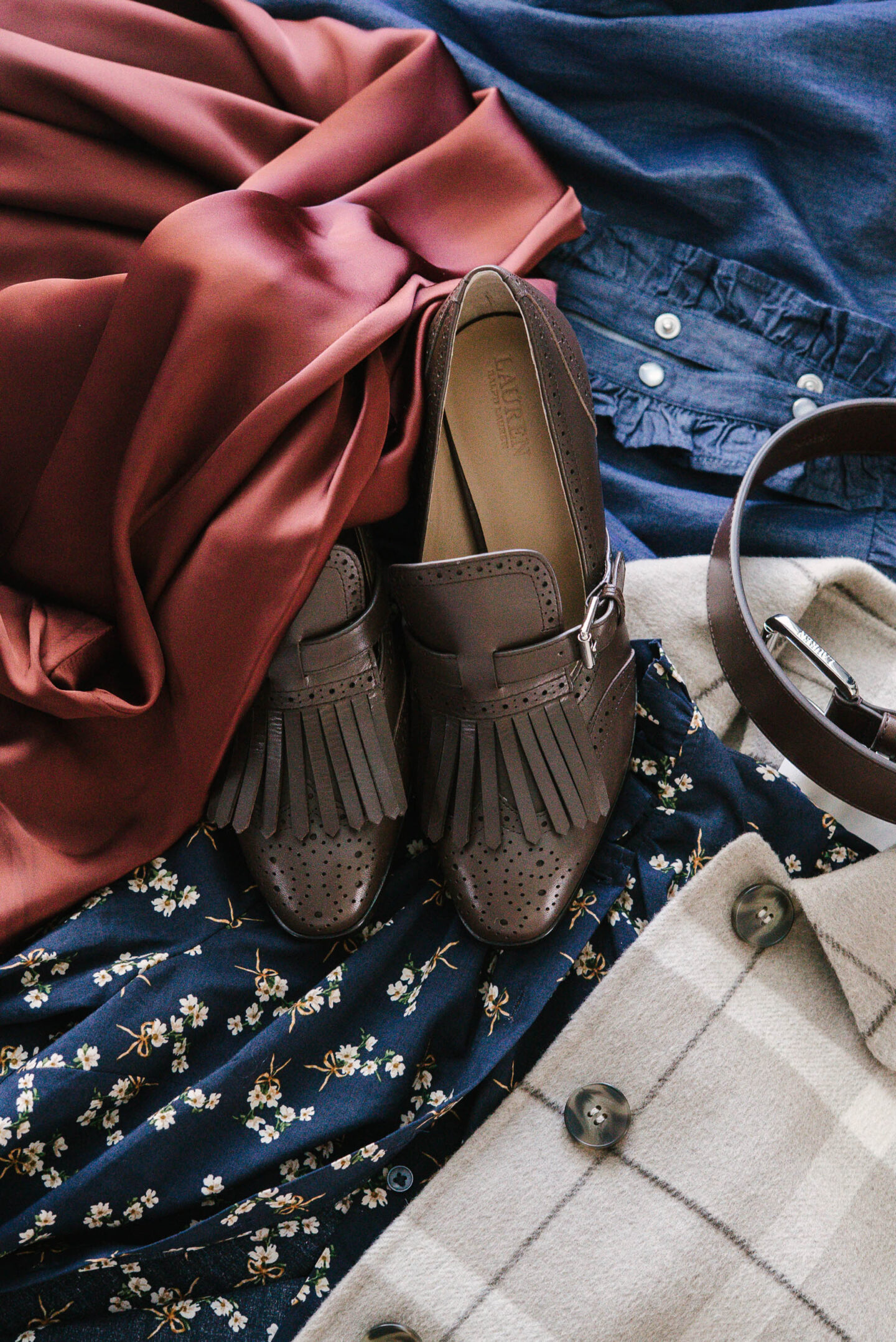 Suurin osa syksyn kapselivaatekaappin päätyneistä vaatteista on vanhoja tuttuja, mutta joukossa on myös tämänsyksyisiä hankintoja. Väripaletti nojaa vahvasti sinisen ja ruskean eri sävyihin. Höysteenä on ajankohtaista burgundinpunaista. Tummanpuhuvasta värimaailmasta huolimatta mukana ei ole yhtään mustaa vaatekappaletta, joita ehkä pidetään yleisesti vaatekaapin kulmakivinä. Sesonkiajattelu avaa mahdollisuuden kokeilla kapselissa harvinaisempia elementtejä, esimerkiksi printtejä ja poikkeavia materiaaleja, kuten satiinia. Toisaalta kapseli sisältää monia sellaisia perusvaatteita ja -asusteita, joita voin hyvin käyttää ympäri vuoden.
