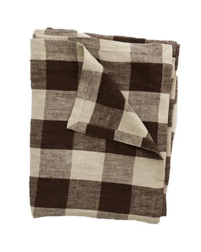 Ruokailutilan puolella on valmisteilla kakkukestit. Pöydälle on levitetty Lexingtonin vuoden takaista mallistoa oleva pöytäliina (mainoslinkki Nordic Nest). Kuten keittiötekstiileissäkin jo nähtiin, klassinen ruutukuosi on palannut ryminällä ja ruudullisia pöytäliinoja näkee nyt useilla merkeillä. Niillä saakin helposti luotua kodikkaan bistrotunnelman omaan keittiöönsä.