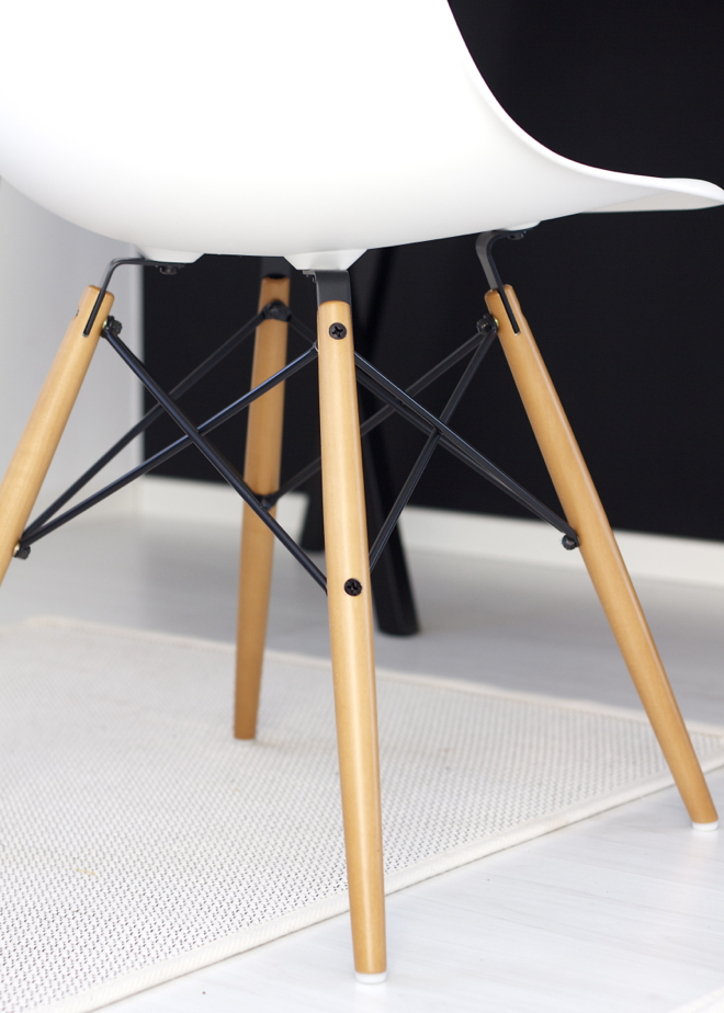 Samaa tuolia olen pitkään ihastellut ja kävinkin Vepsäläisellä sitä koe-istumassa, mukavalta tuntui. Itseäni jäi mietityttämään istuinosassa näkyvät pyörylät eli ne kohdat, joissa jalat ovat alapuolella kiinni näkyivät istuimen muovissa vähän häiritsevästi. Mahtaako kuulua asiaan, näkyykö sinunkin tuolissasi?