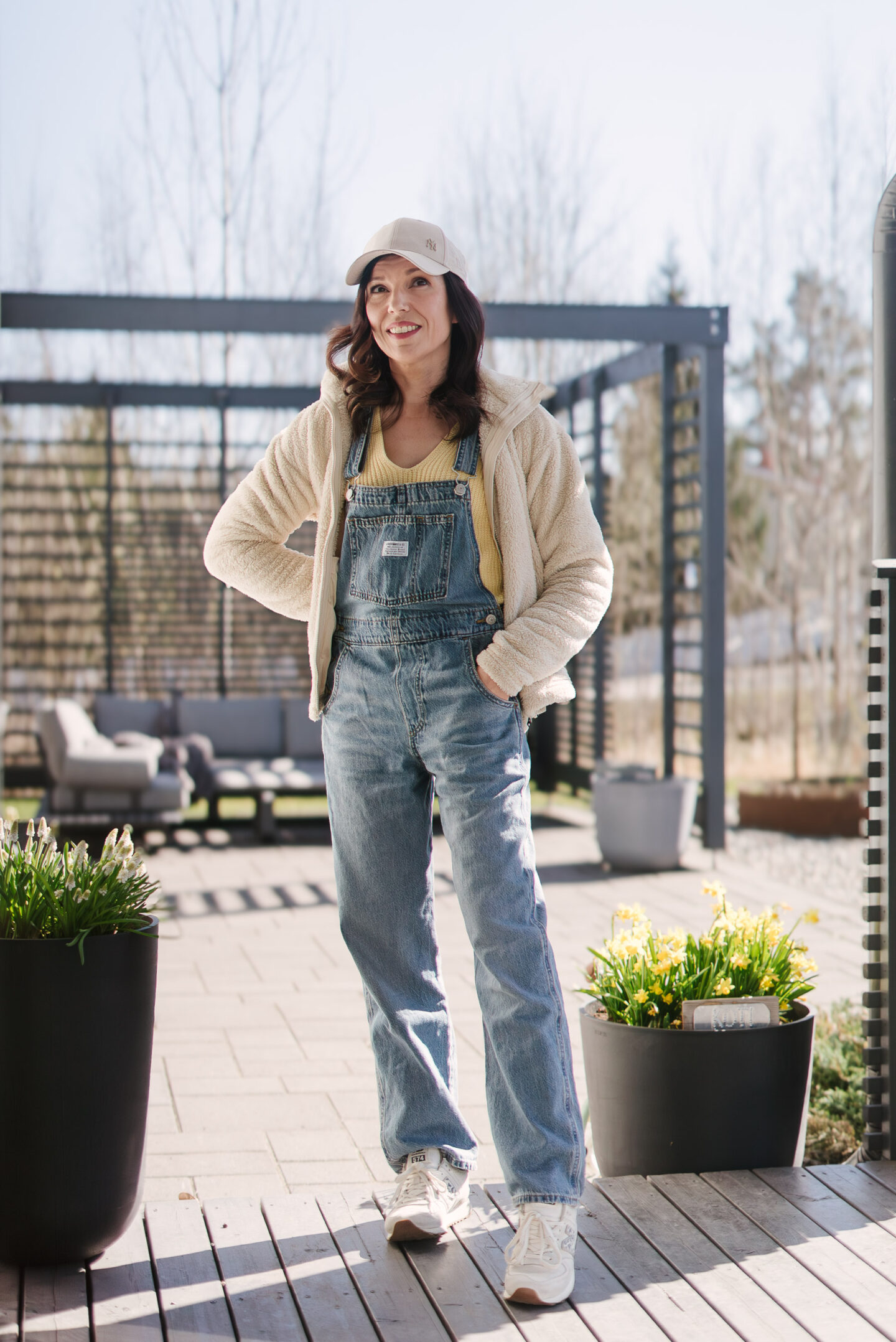 Joka tapauksessa butter momista on sosiaalisen median käsissä muototunut pukeutumiseen liittyvä 90s Butter Mom -estetiikka, fantasiakuva siitä, miten nämä tyydyttyneitä rasvoja pelkäämättömät äidit pukeutuivat. Tyyli koostuu väljistä paitapuseroista, bermudashortseista, lippalakeista, tennissukista lenkkareissa ja kodikkaan muodottomista t-paidoista. Ja tietysti denimistä. Farkkupaitoja, mom jeanseja ja ennen kaikkea lappufarkkuja. Jos butter mom -estetiikkaa on uskominen, kaikilla äideillä oli farkkuhaalarit 90-luvulla!