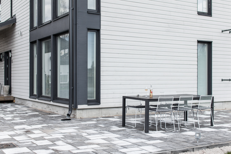 Tässäpä vappunäkymiä terassilta. Kuinka sattuikaan, että juuri kuvien ottohetkellä oli pilvilauttaa, vaikka muuten päivä oli mitä säteilevin! Kannoin katetulla takaterassilla olleet kalusteet uudelle kiveykselle. En tiedä, onko tämä niille pysyvä sijoituspaikka, mutta ainakin näin aurinkoisena päivänä oli mukava istuskella lämmössä. Takaterassille aurinko paistaa vain aamuisin ja se on monesti makuuni hieman liian viileä (ja joinain helteisinä päivinä taas ihanan viileä).