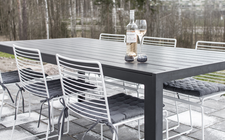 Edit: koska pöydästäkin tuli kyselyitä, malli on nimeltään Livorno ja ostettu Jyskistä. Runko on alumiinia ja pinta muovipohjaista artwood-puujäljitelmää. Samantapaisia pöytiä näyttää olevan tarjolla tänäkin kesänä.