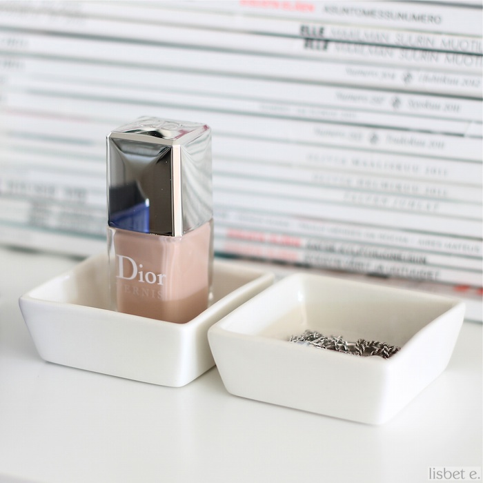 Koska joka tapauksessa olen ollut vaalean, neutraalin sävyisen kynsilakan tarpeessa, ostin tämän Diorin sävyn nro 219 Safari Beige. Se on vain aavistuksen vaaleampi kuin sormieni ja kämmenselkäni sävy tällä hetkellä.