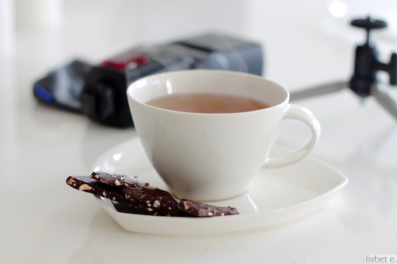 Muuten, sen sijaan että valittaisin ainaisesta hämärästä, päätin tehdä asialle jotain ja hankin vihdoin kameraani ulkoisen salaman, joka lojuu kuvassakin teekupposen taustalla yhdessä nimpparilahjaksi saamani miniatyyrijalustan kanssa (joka on niin ikään aika kätevä kapistus). Kuvittelin, ettei salamalla pysty saamaan kuviin luonnonmukaista valoa, mutta Ronjan postaus aiheesta muutti mieleni. Viime viikot olen harjoitellut salamakuvausta joten lähiaikoina tänne blogiinkin varmaan ajautuu muutama esimerkki.